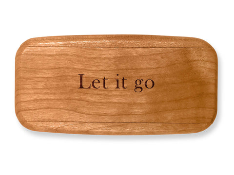 This box has plenty of room for trinkets. For small collections this box is perfect for organization and display. Made of Cherry, this box features one of our Classic handcrafted inlays and a hidden sliding dovetail lid. Hand applied inlay adds a touch of elegance and charm to this clever heirloom piece. From our Classic Inlay Collection. Quote Reads: "Let It Go"