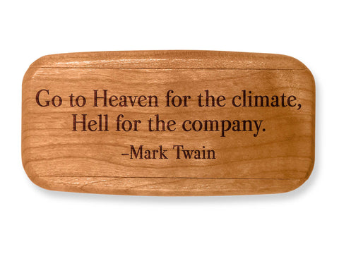 Fill it to fit your own needs with medicine or vitamins, or small mementos. Made of Cherry, this box features a popular quote and a hidden sliding dovetail lid. From our New Cherrywood Quote Collection. Quote Reads: "Go to Heaven for the climate, Hell for the company. -Mark Twain"